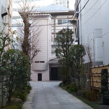 参道の先に見える近代的な本堂