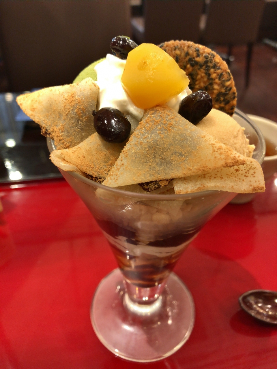 なかなか八つ橋をのっけたパフェはないと思ったからです。結構お腹にたまりました。