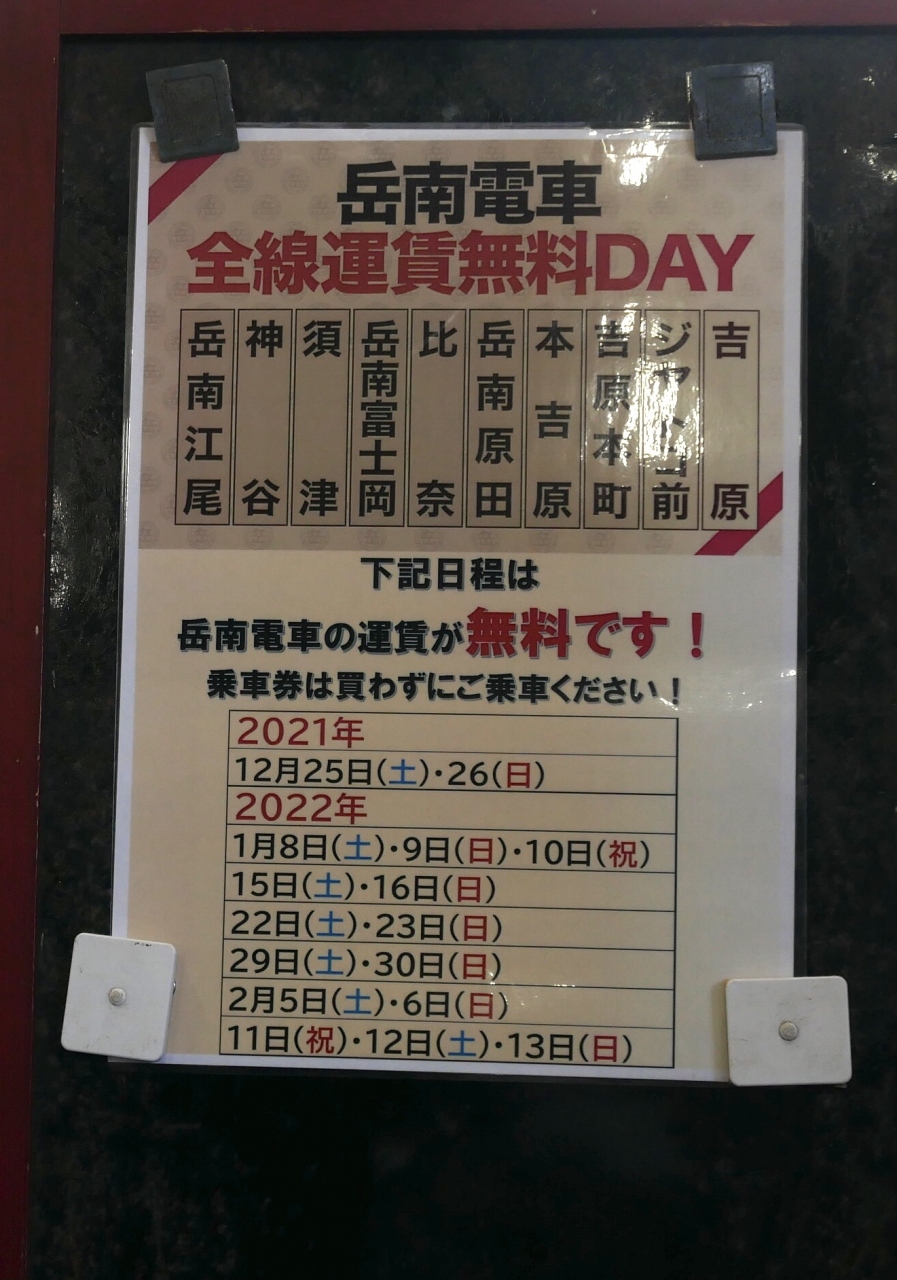 静岡富士市のほのぼのローカル私鉄岳南鉄道、なんと無料デーでした