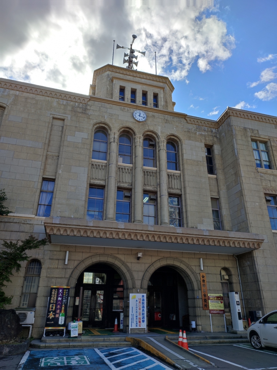 1937年に建てられた近代建築で、鉄筋コンクリート3階建ての重厚な建物です。正面からみるとわかりますが、左右非対称でお役所系の建物としては珍しいと思います。七日町通りのような和風ではなくとも、やはり街の歴史を感じますね。