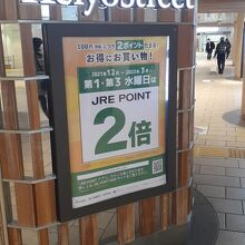 従来ならばコンビニ・スイーツ・雑貨のお店等が軒を連ねているところですが、2022年2月11日現在、改装中の為か営業中のお店は少なめで、やや暗い感じを受けました。