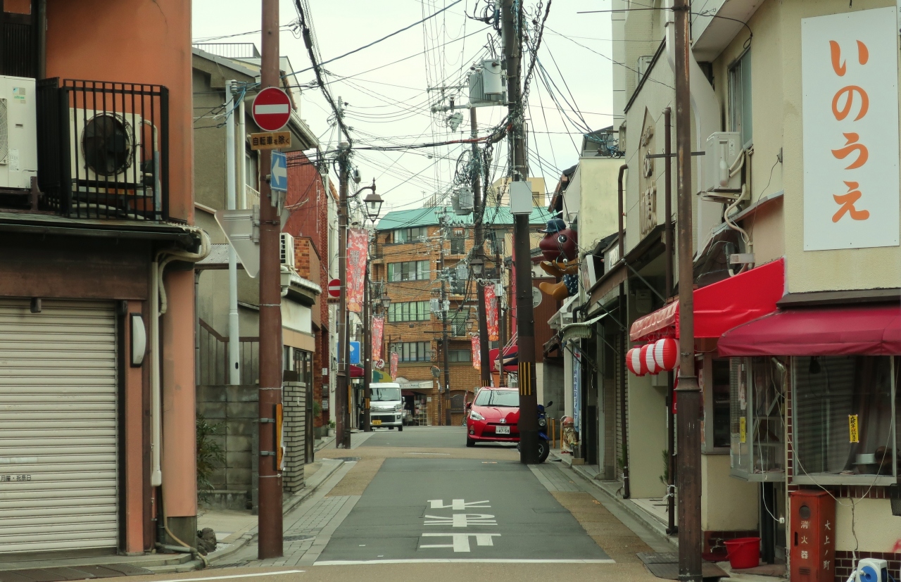 大将軍八神社の門前町的な場所に広がる商店街だ。西大路から北野商店街に接続する約400メートルに20店ほどが並ぶ。地域生活を支えるタイプの商店街だが、大型スーパーの進出などで沈滞。活性化策として標榜したのが「妖怪ストリート」だという。商店街がある一条通は妖怪が練り歩く百鬼夜行の伝説があったことから、近隣の美術大学とタイアップして妖怪が練り歩くイベントなどを展開し、人気を呼んでいる。1月の3連休に訪ねたが、生活型とあって閉店のショップが多かった。平日に訪ねたほうが、商店街の魅力が実感できそうだ。