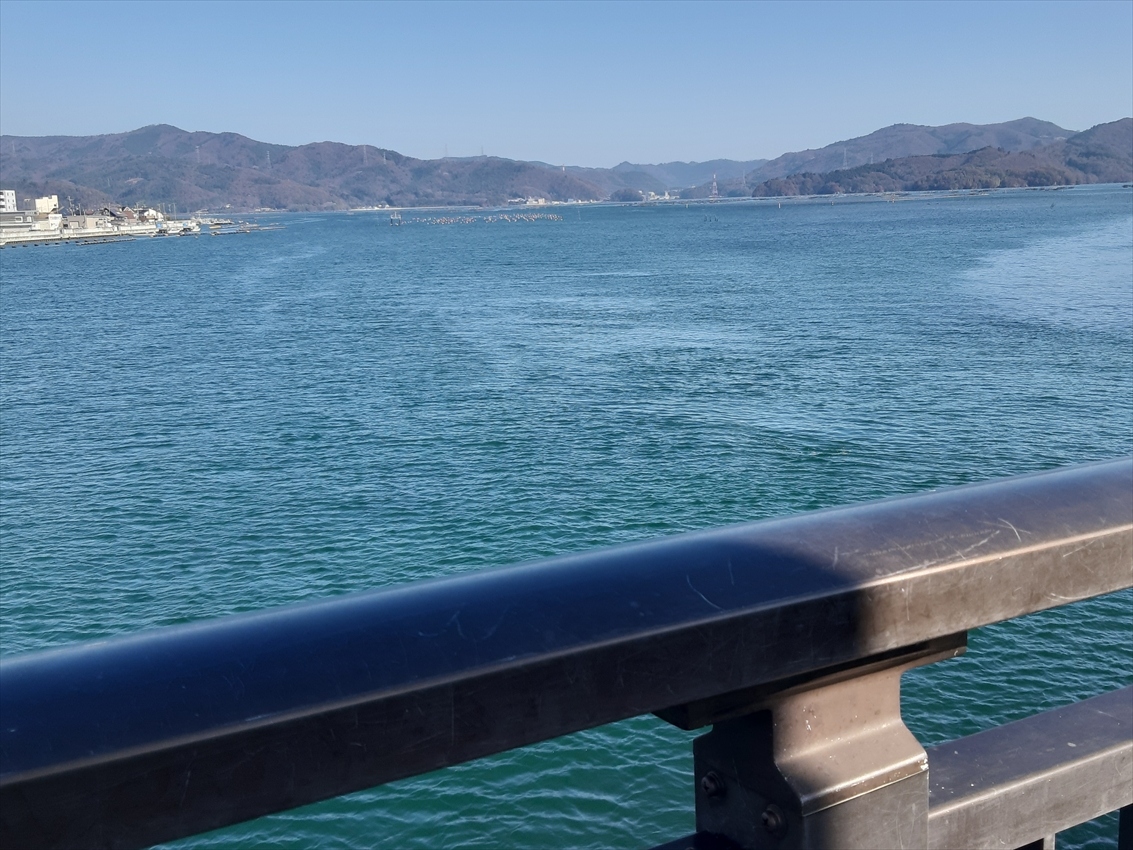 湖かと思わせるその穏やかな風景は、お天気さえよければ上記の渡波水道に架かる万石橋からよく見えます。