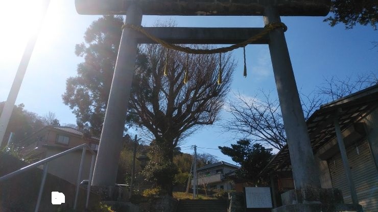 加茂川を越え、住宅街の細い道を入った高台に鎮座している。場所がややわかりづらかったが、通学路の標識があるところの道を曲がり、坂を上ると鳥居が見えてくる。