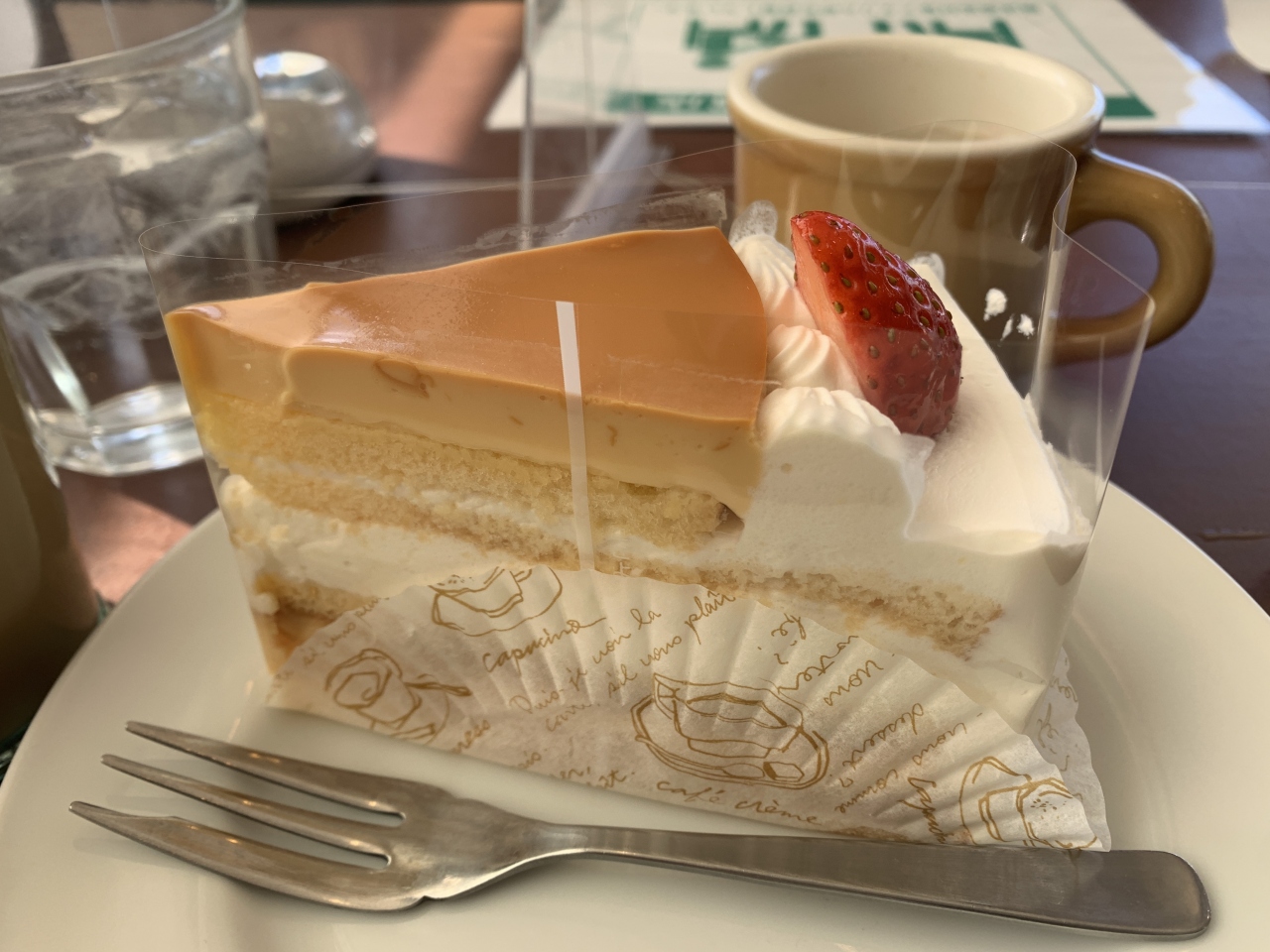 今回はスイーツをいただきました。パステルの滑らかプリンが乗ったケーキです。何度食べてもパステルのプリンは美味しいですね~