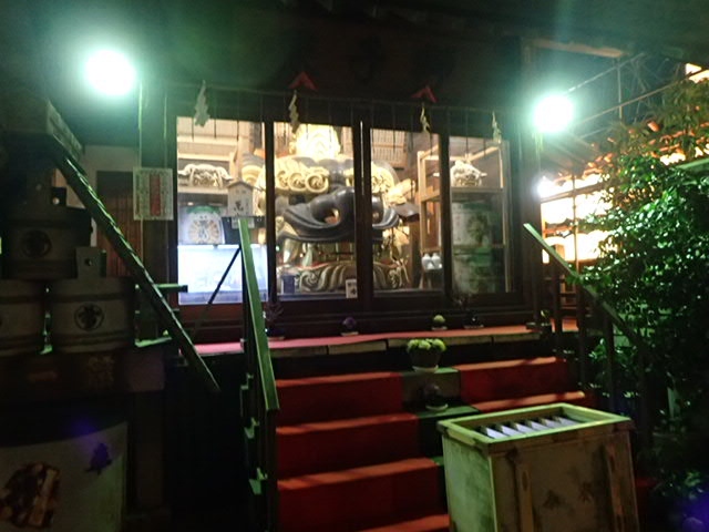 波除神社の鳥居を入るとすぐ、左右の獅子殿に「厄除天井大獅子」がありました。重さはそれぞれ1トンもあるらしいです。この獅子の舌の上に、願いごとを書いた串を納めて念じると、獅子がその願いごとを飲み込んでかなえて下さると言われているそうです。