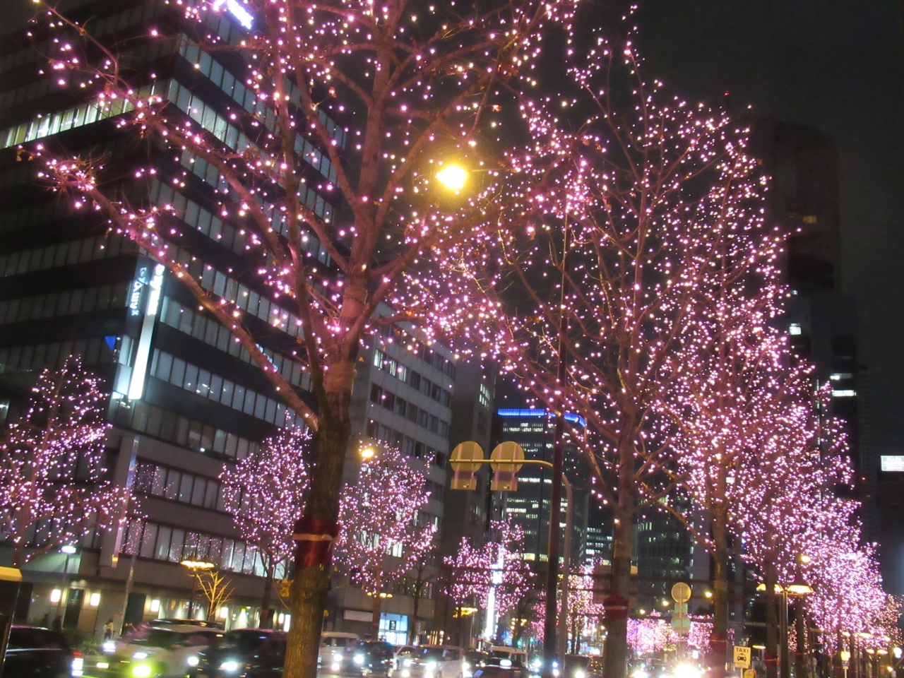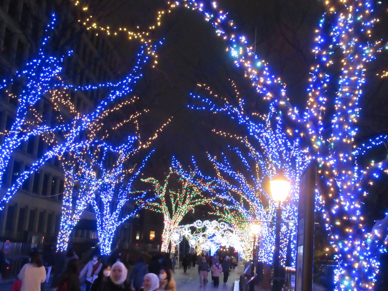特に市役所横のみおつくしプロムナードのケヤキ並木のイルミネーションが綺麗でした。