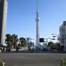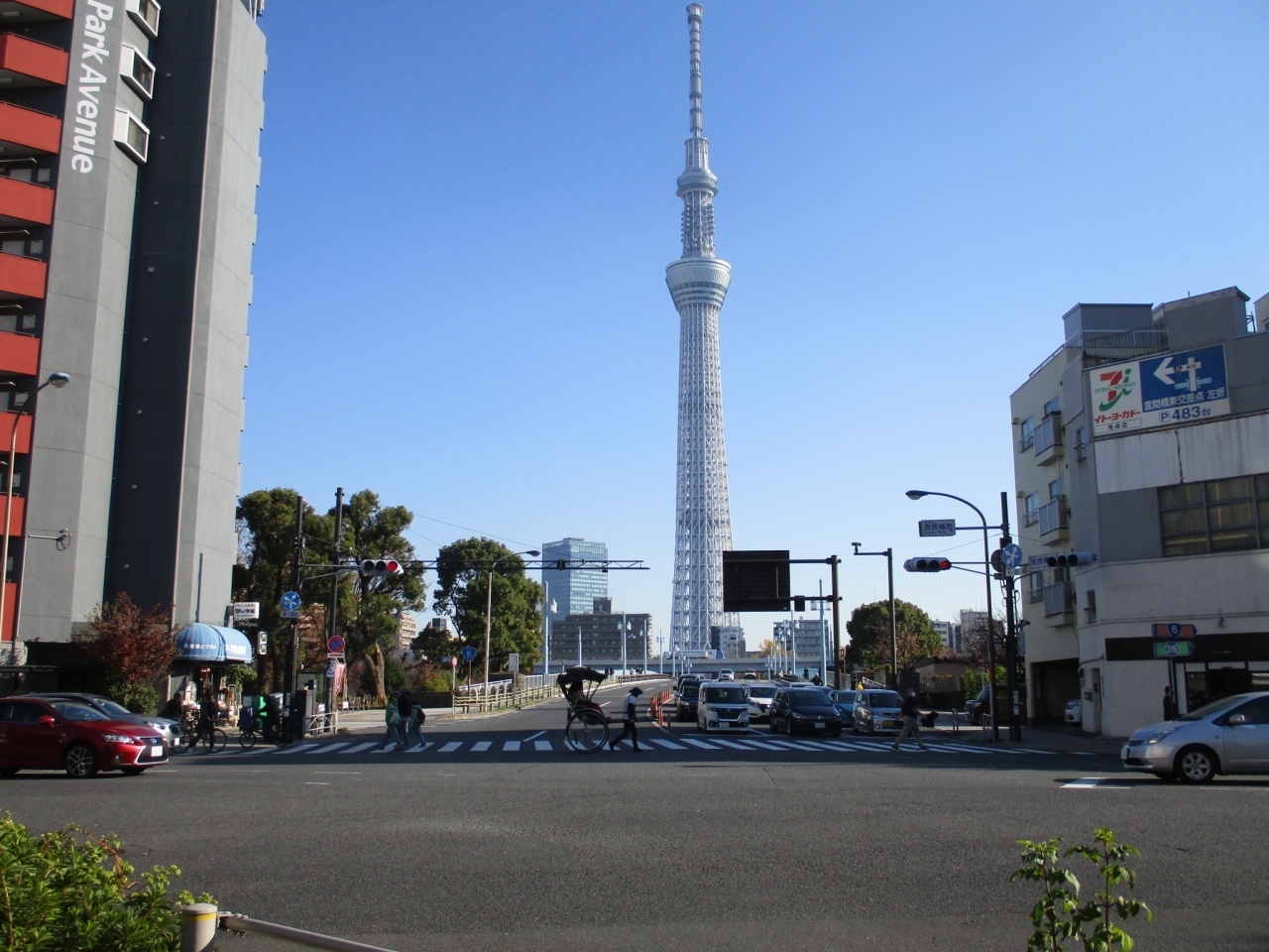 隅田川にかかる橋の一つです。浅草寺の北側にある言問通りを東へ行くとあります。橋自体は特に特徴はなく、車がひっきりなしに通っています。車道と歩道がはっきりわかれています。浅草側から橋を見ました。このあたりからスカイツリーがきれいに見えました。