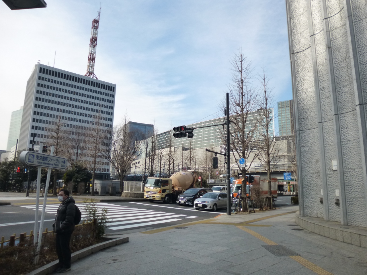 東京都庁の跡地に東京国際フォーラムがオープンしたのは1996年と、25年以上前のことですが、今なお建築物としての魅力も色あせないと感じています。鍛冶橋交差点から撮影しましたが、2月初旬ということで木々が落葉しており、ほぼ建物全景を一望することが出来ました。船をモチーフにしているというのがよくわかる光景でした。