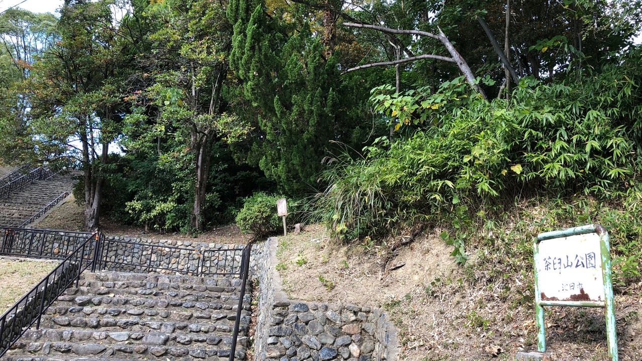 池田市の北部・茶臼山山にある古墳です。平成30年、保存工事が完了しました。古墳の周りの遊歩道で、古墳を1周できるようになっています。茶臼山古墳は、前方後円墳のような形ですが、前の方墳の部分が、よくある台形ではなく、長方形になっているのが珍しいです。