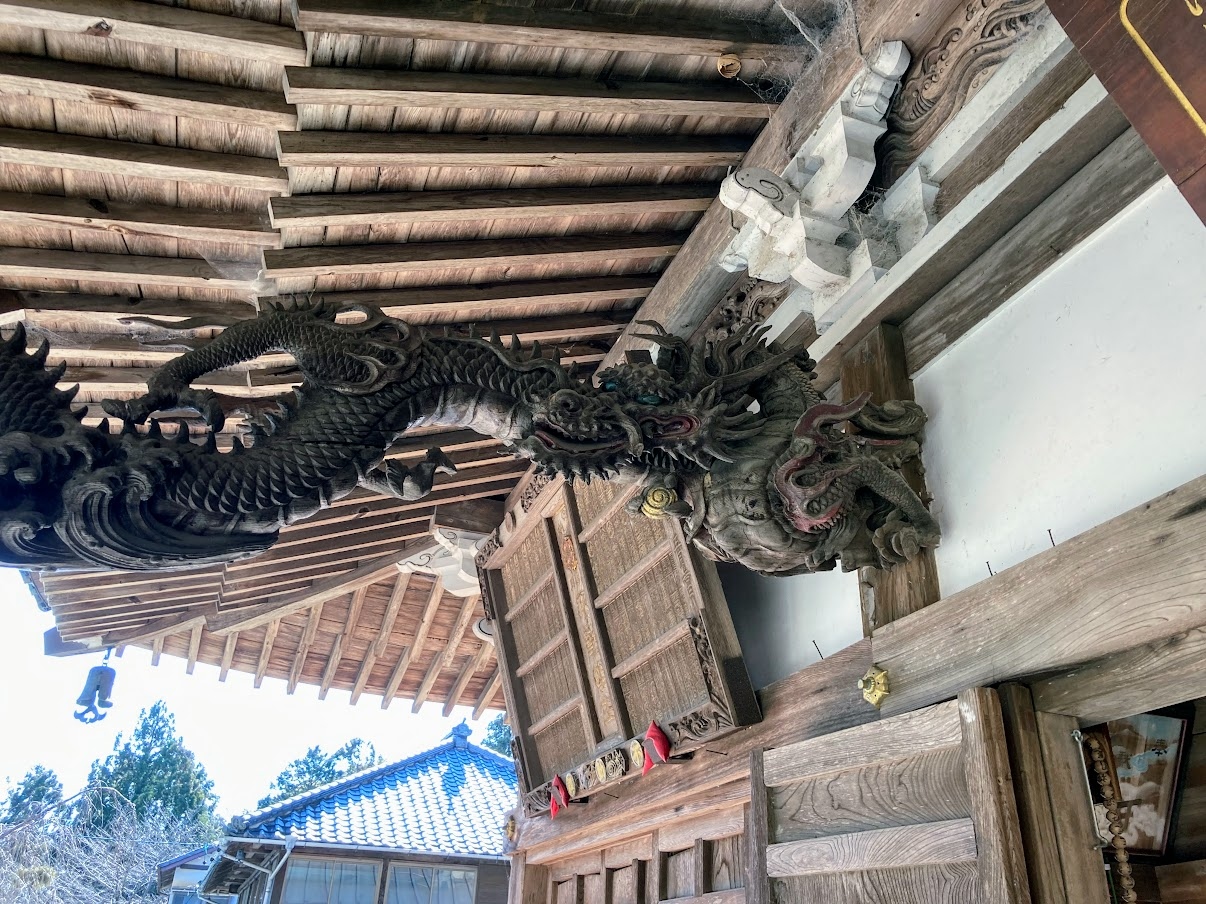 本堂の鈴木八郎氏作の「上り竜」と「下り竜」のことなど、見所や由来を分かりやすくお話してくださいました。