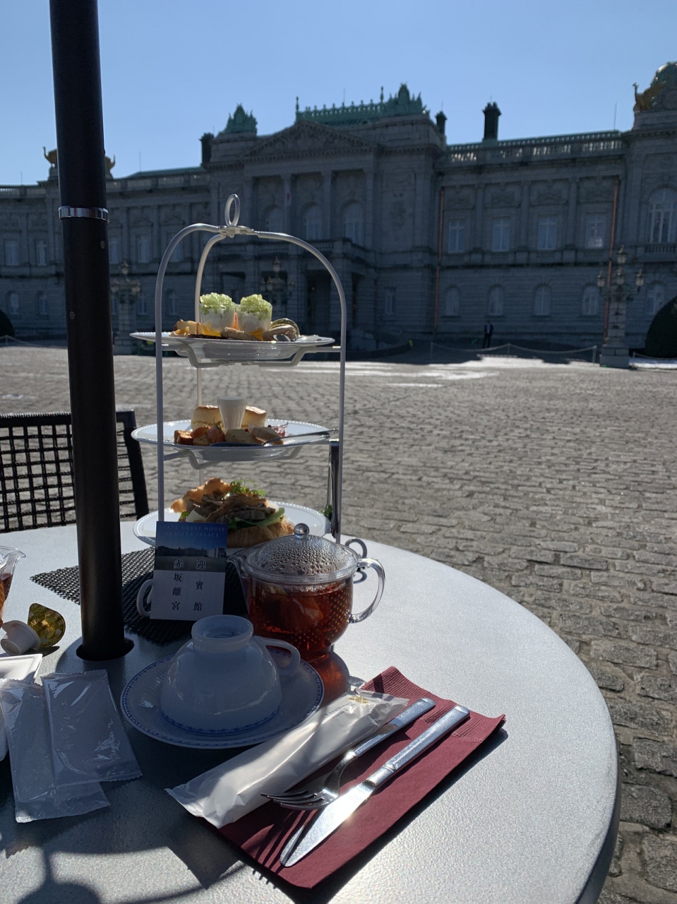 厳重警備の中まずはアフタヌーンティーで外観を楽しみます。