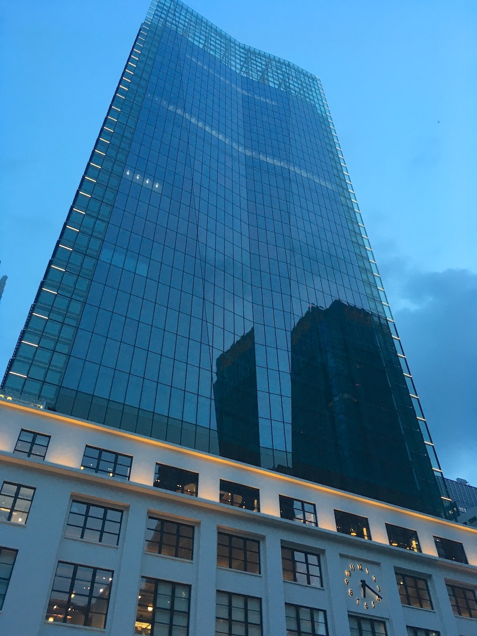 外に出て、改めて高層部分の外観を見て、真ん中が抉れた独特のデザインだと思いました。