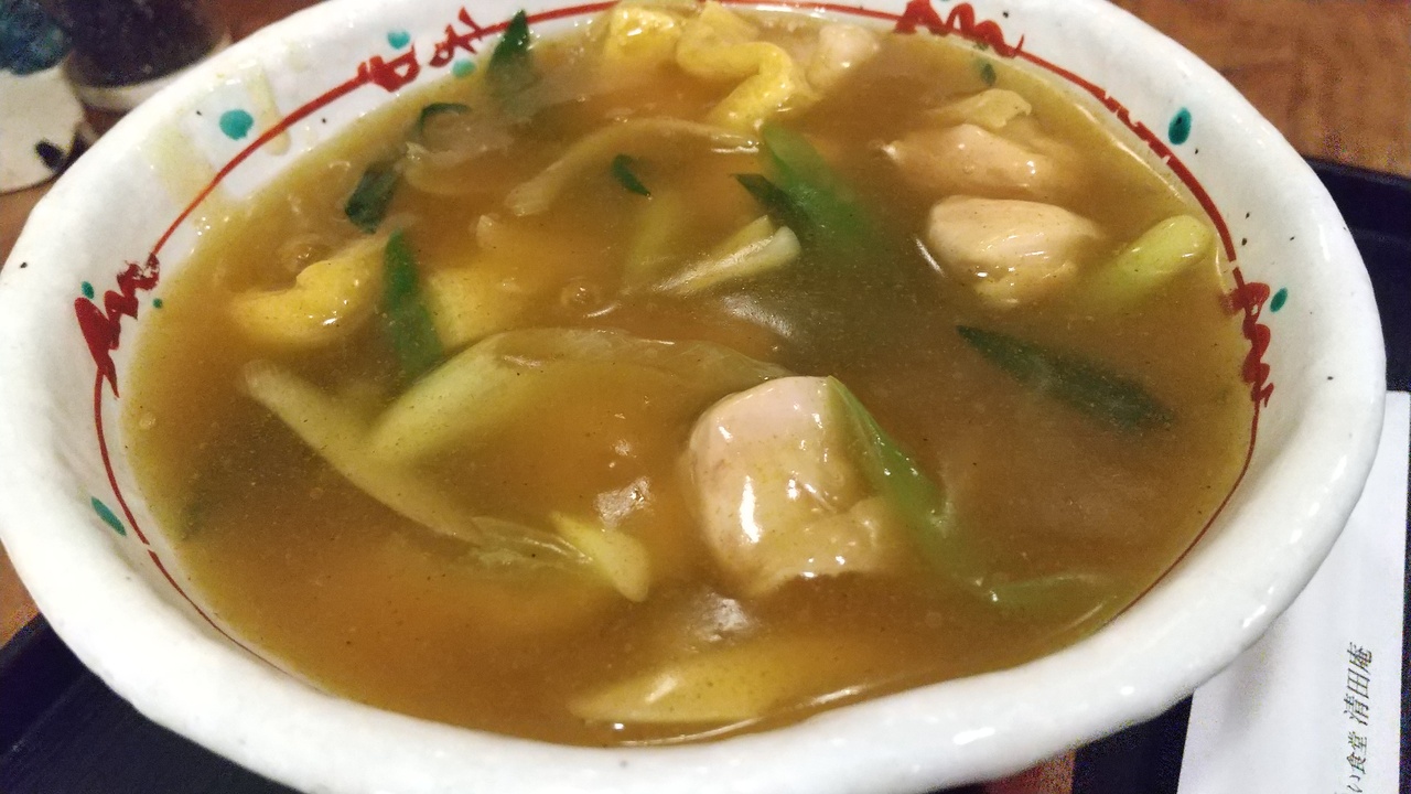 今回は初めてのあんかけきしめん。きしめんに熱々のあんが絡み温まります。寒い冬にはかつを出汁と椎茸の出汁のあんが優しい味わいで最高でした。