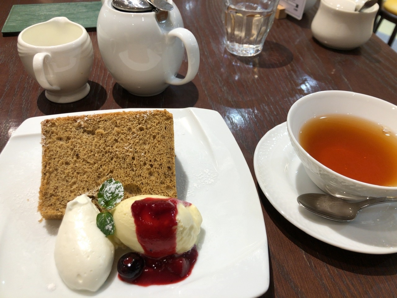 紅茶はポットサービスなので2杯以上ありました。ケーキは冷えたお皿でサーブされます。甘さ控えめのシフォンケーキは罪悪感なく頂けました。