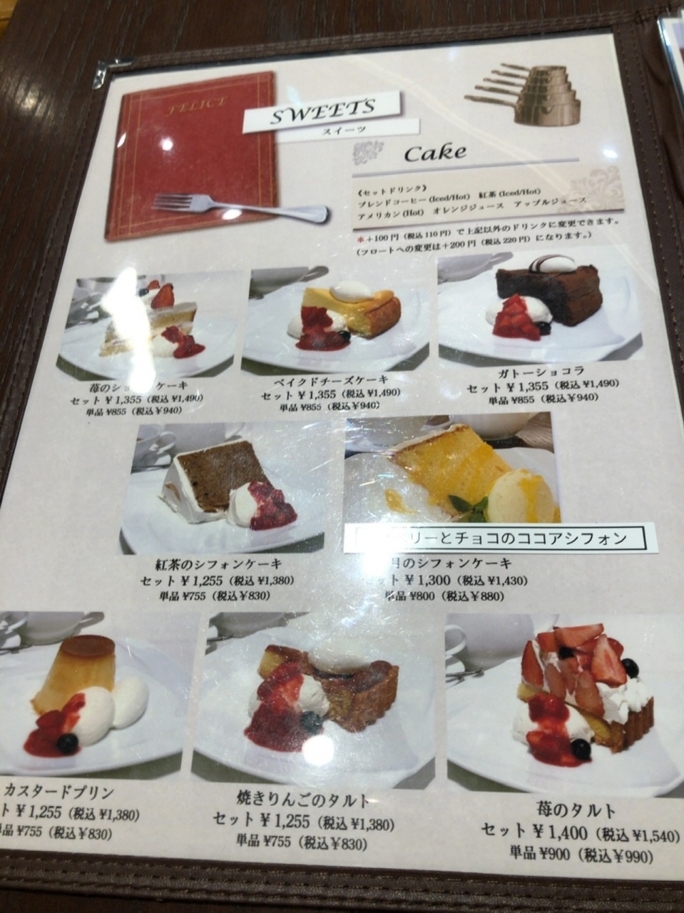 横浜そごう9階にあるフェリーチェ。ランチはパスタなど揃ってます。ケーキも全て手作り!ケーキセットは1200円~。ケーキ2個セットは2200円程度。