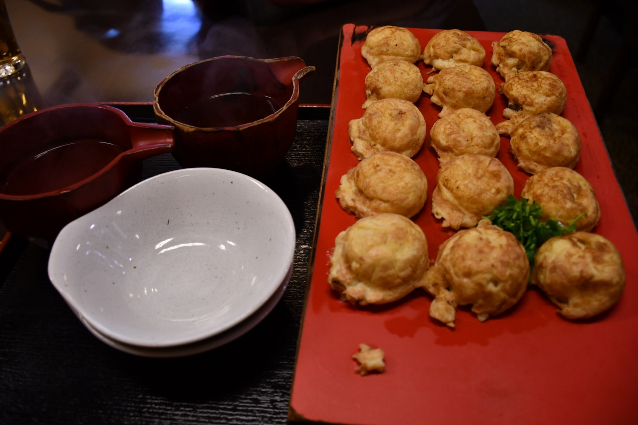 明石と言えば、子午線の町、天文科学館もありますが、名物はまず「玉子焼き」でしょう。お出汁に浸して熱々の蛸焼きを頬張るのは、寒い季節が一番です。名所の魚の棚商店街--地元では「うおんたな」と言います--には、何軒も玉子焼きのお店があります。