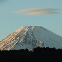 今年も正月明けの夕方に雪と笠雲を被った夕日に染まる美しい姿が見られました。