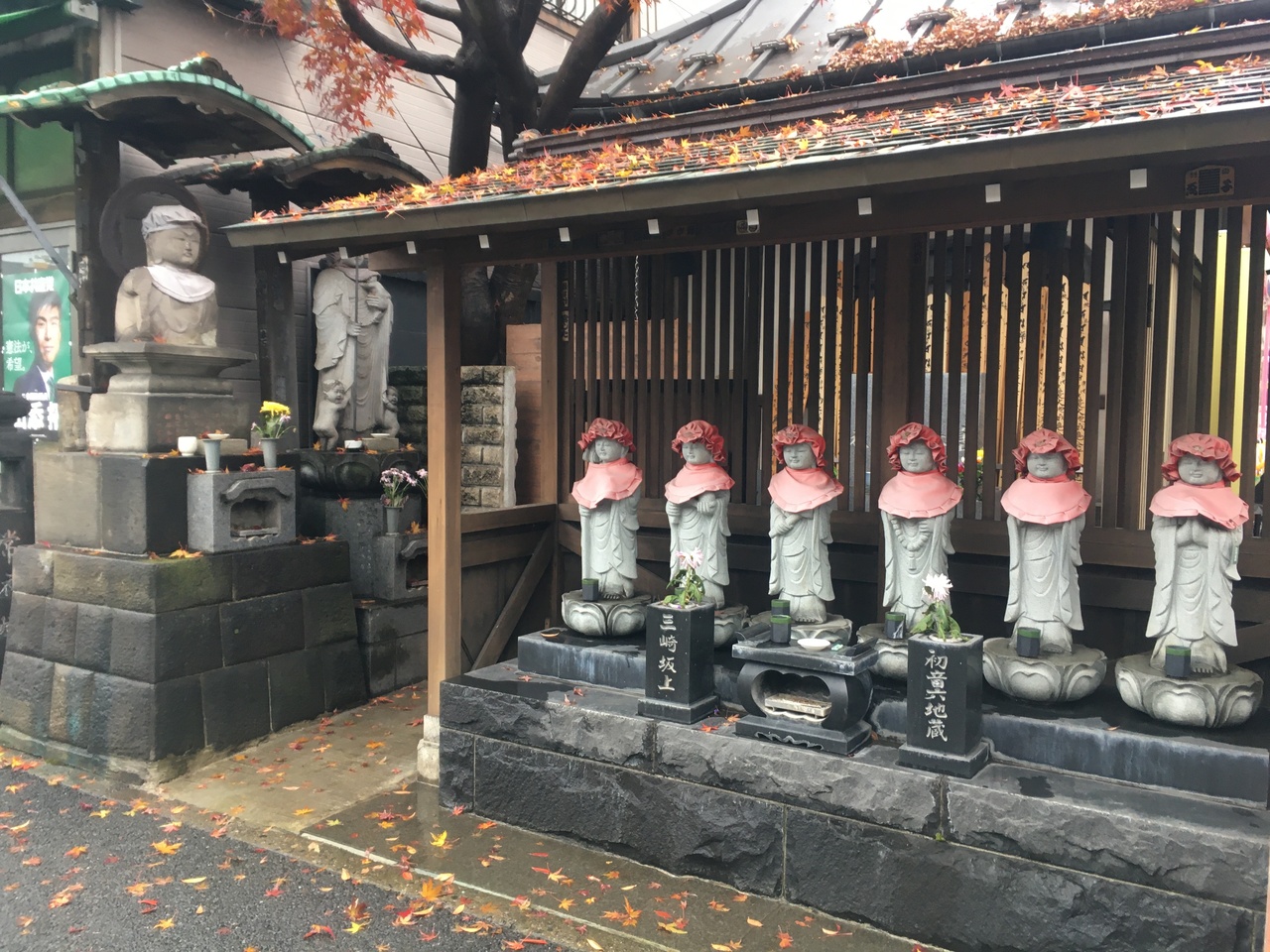 東京メトロ千代田線「千駄木駅」から徒歩で10分ほどです。三崎坂を登ったところにあります。境内の右手は「台東初音幼稚園」が併設されています。真言宗の寺院で「谷中の火除け不動」として知られており境内左手の不動堂には五大不動明王像が祀られています。不動堂と一体の大師堂には弘法大師像が安置されています。正面の本堂は階段を上って二階に位置する変則的な構造です。道路に面して「六地蔵尊」、「延命地蔵尊」「子育て地蔵尊」など見どころがあります。
