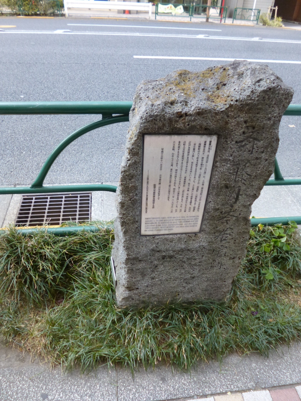 淡路町の交差点から南へ150メートルほど、外堀通り沿いの歩道の植え込みに「斎藤月岑居宅跡 (生誕の地)」の石碑があります。斎藤月岑は、1804年にこの地に生まれた人物で、「江戸名所図会」「東都歳事記」「武江年表」などの著書を残しています。やや武骨な外観の石碑で、遠くから見ると史跡とは感じられないかも知れません。