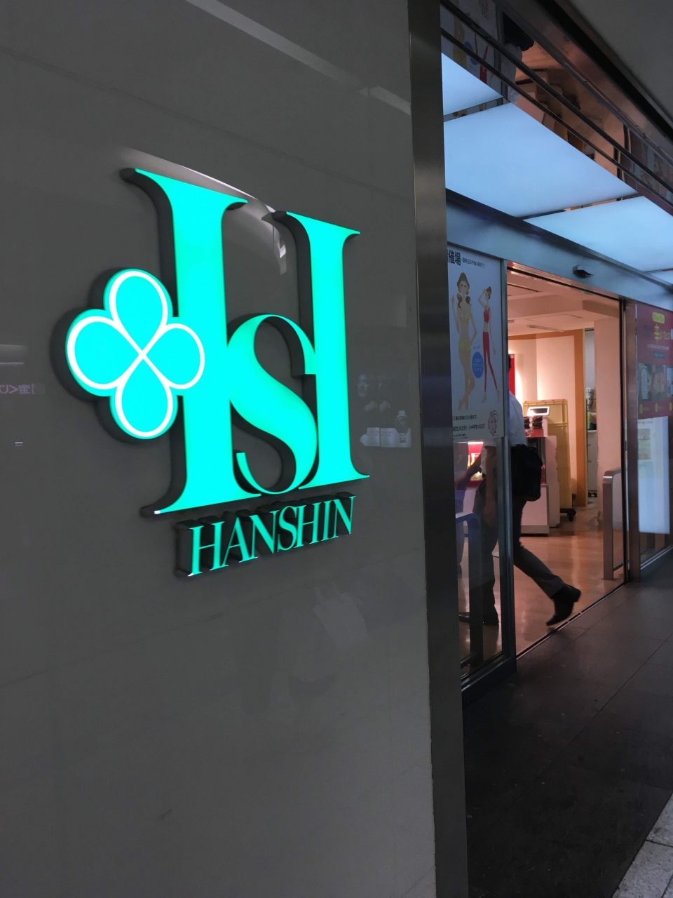 大阪駅、梅田駅からすぐの場所にある阪神百貨店。建て替えが完了していろいろなテナントが入った阪神梅田本店。まだ館内は改装中かつコロナで出入り口が限られているせいか、あまり看板もなくちょっとわかりにくい構造になっています。
