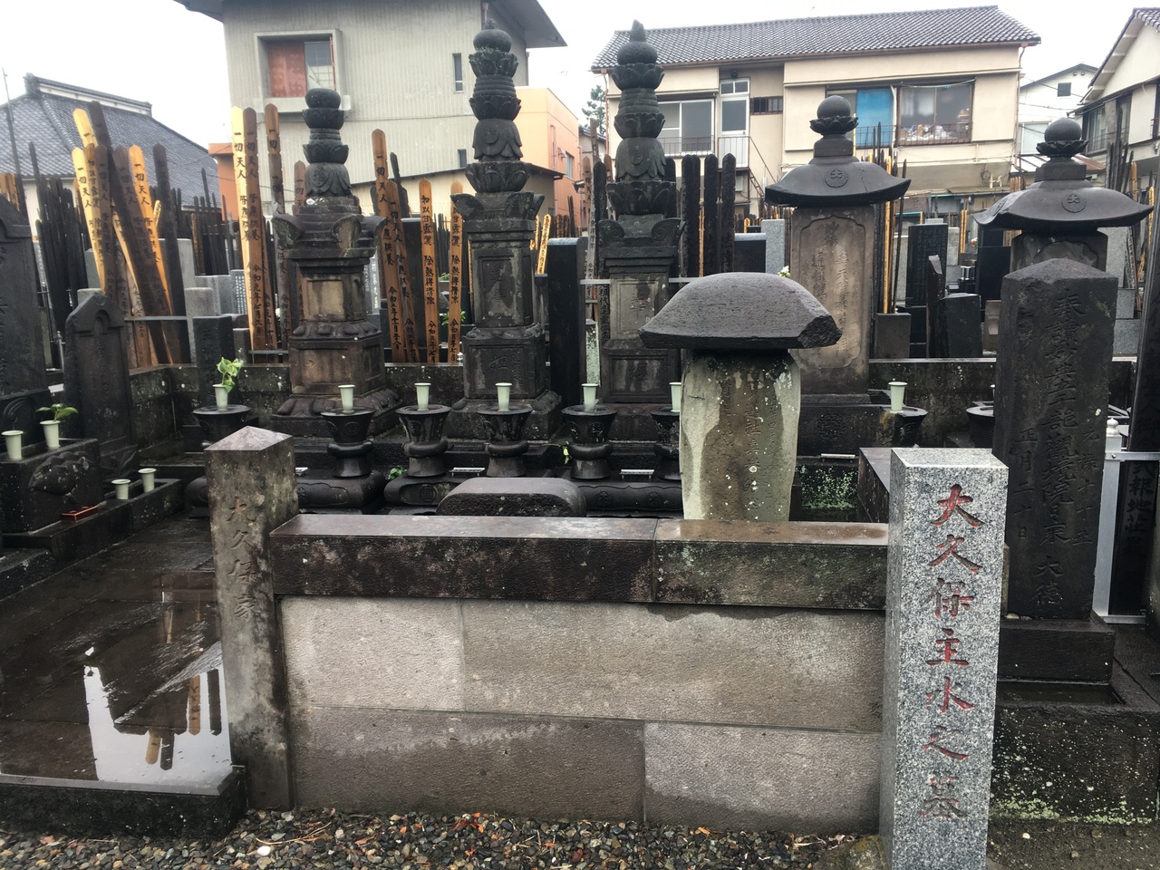 東京メトロ千代田線「根津駅」から徒歩で15分ほどです。谷中の名刹「瑞輪寺」の墓地にあります。大久保主水は徳川家の家臣で大久保藤五郎という名の菓子職人でした。徳川家康が江戸に街づくりを始めた際に用水事業を命ぜられ、江戸城や市中の引水に成功して「神田用水」を整備し、水道の先駆者となりました。境内の「鐘楼」の脇から案内表示に従って進むと大久保主水の墓にたどり着きます。途中に「八角井戸」もあるので見逃さないでください。