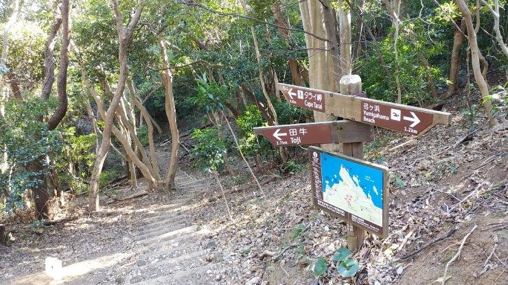 らくらくコース、健脚コース、海岸コースとわかれており、行きはらくらくコース、帰りは海岸コースを利用した。