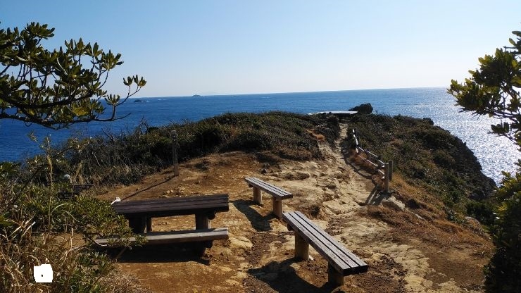 帰りの海岸コースは、海岸付近を散策できるコース。一度海岸近くに下りる分、登りもあるが風景の変化を楽しめた。また、試しに健脚コースにも立ち寄ったが、こちらはピークを経由するが眺望は得られず。風景だけを楽しむなららくらくコースで良いかと感じた。