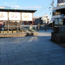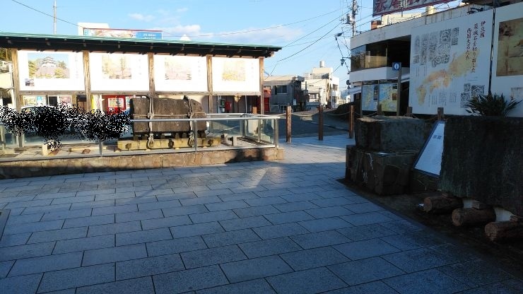 伊豆稲取駅下車すぐの場所にある広場。山間の斜面に設けられた駅のため、駅前広場としてのスペースは限られていた。
