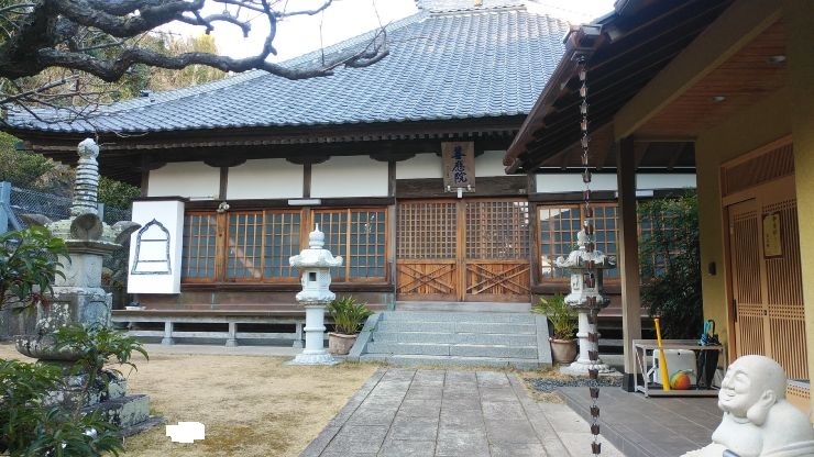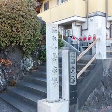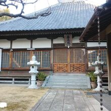 斜面に建てられたコンパクトな印象の境内。県道114号線沿いから階段を上がり境内に入ると、木造の歴史を感じる本堂が建てられていた。小さなスペースだが庭も設けられ落ち着いた雰囲気が感じられた。
