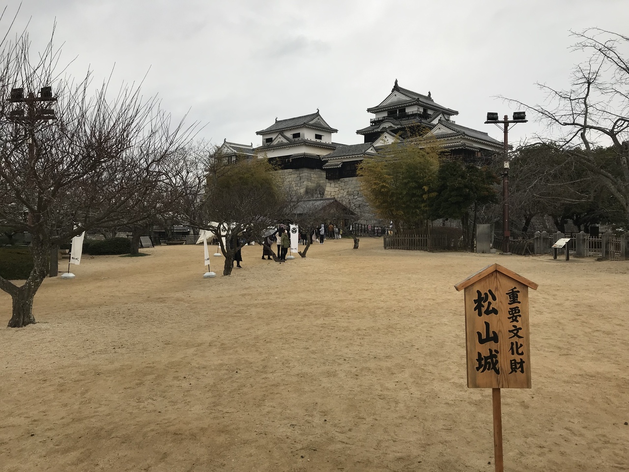 山城の松山城は、市街地から見上げた本丸は美しいく、本丸からは瀬戸内海の眺めが美しい。