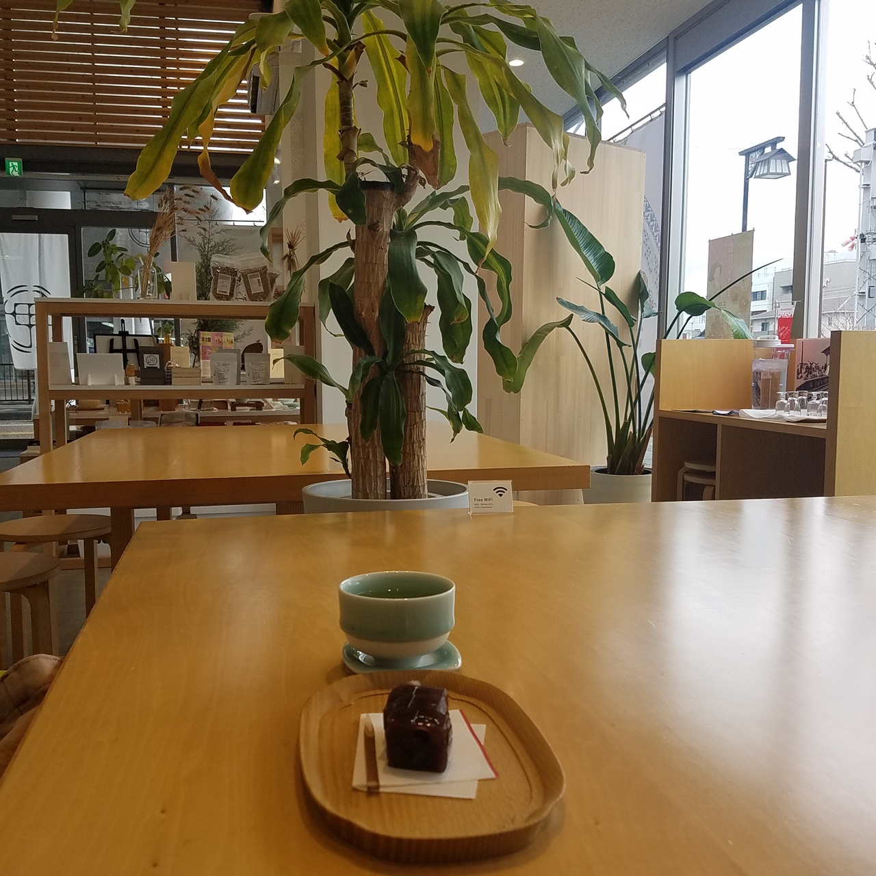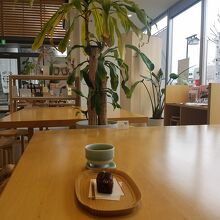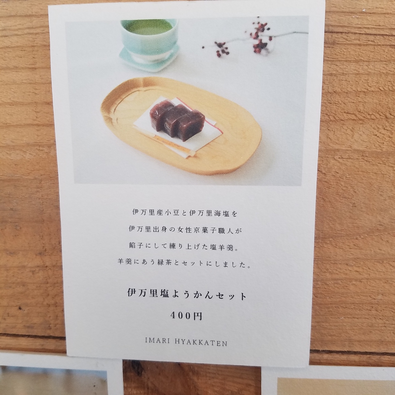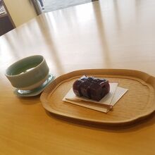 緑茶とセットの塩羊羹を頂きました。400円、リーズナブルです。お茶も羊羹も美味しく頂きました。