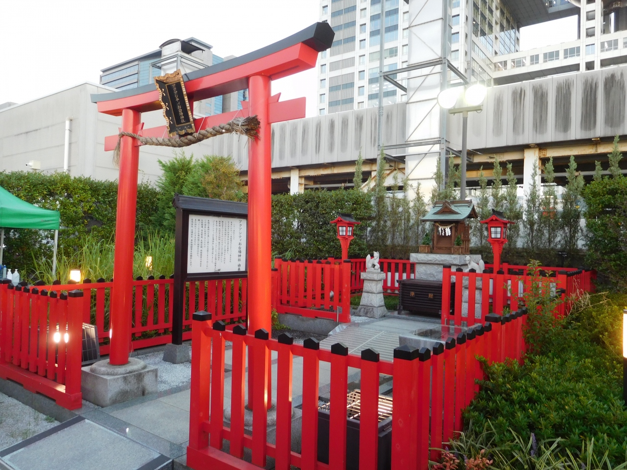 アクアシティお台場の7階の外に出た場所(屋上)にある神社です。エスカレーターで上がって来ると、鳥居があるので、どこに神社があるのだろう?と思ってしまいますが、屋外のバーベキューコーナーのすぐ近くにありました。背後にはフジテレビがあり、とてもこじんまりとした社殿とのギャップ感が感じられました。