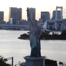 お台場海浜公園内にある、お台場のシンボル的存在の「自由の女神像」です。アクアシティお台場の台場駅方面に行くと、レインボーブリッジを背景に真正面から写真が撮れる場所がありました。丁度、夕暮れ時だったという事もあり、他にも同じように記念写真を撮っている人が結構いました。