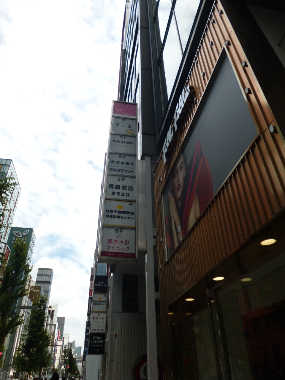 銀座8丁目、中央通り沿いに1970年築の長崎センタービルがあります。長崎新聞社や長崎放送の東京支社が入る建物ですが、8階にはテレビ埼玉の東京支社も入っているようです。同じく新橋駅近くにある、静岡新聞の建物に比べると、建物自体に特徴はありません。