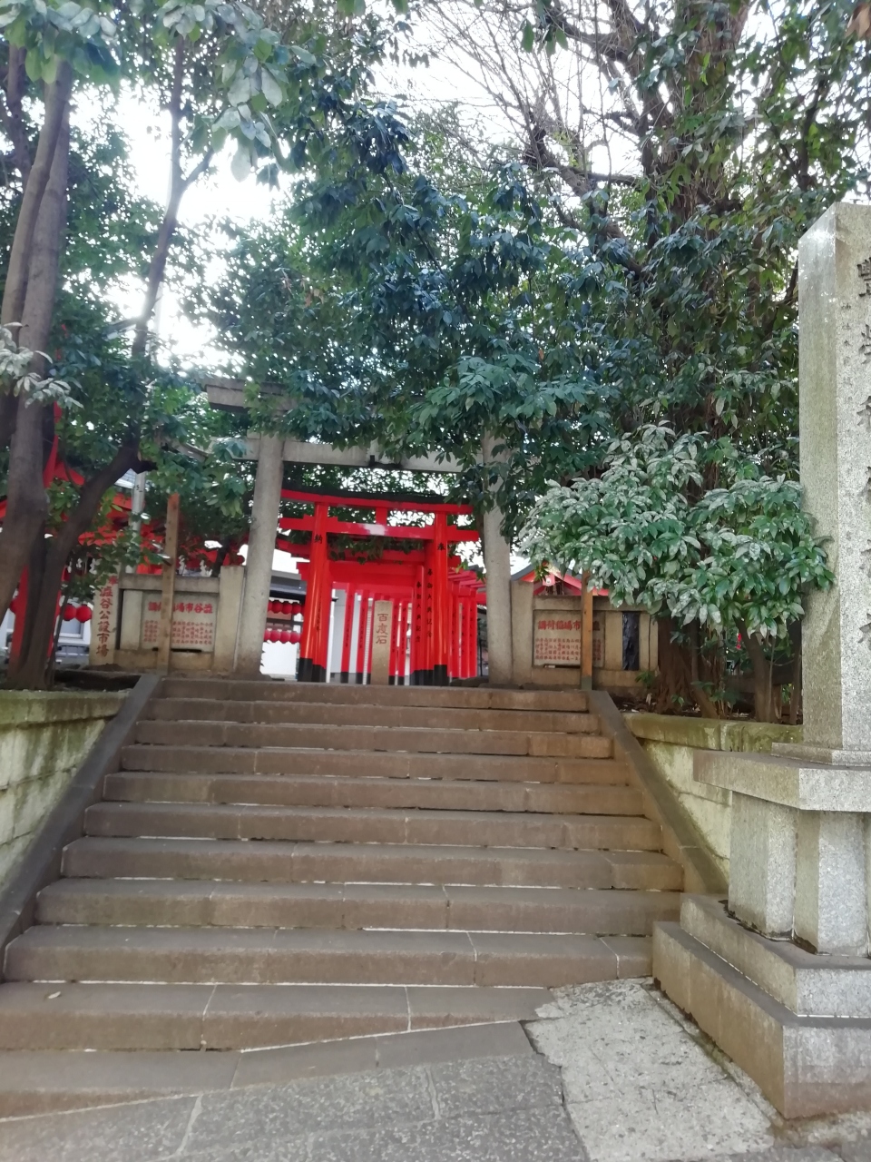 渋谷の首都高沿いの大通りを横に入ると、静かなお稲荷さんがあります。道をはさんで金王八幡神社がありますので、両方お参りするといいと思います。こちらは小さな神社ですが、並んだ鳥居が特徴的で、静かな落ち着いた雰囲気でした。