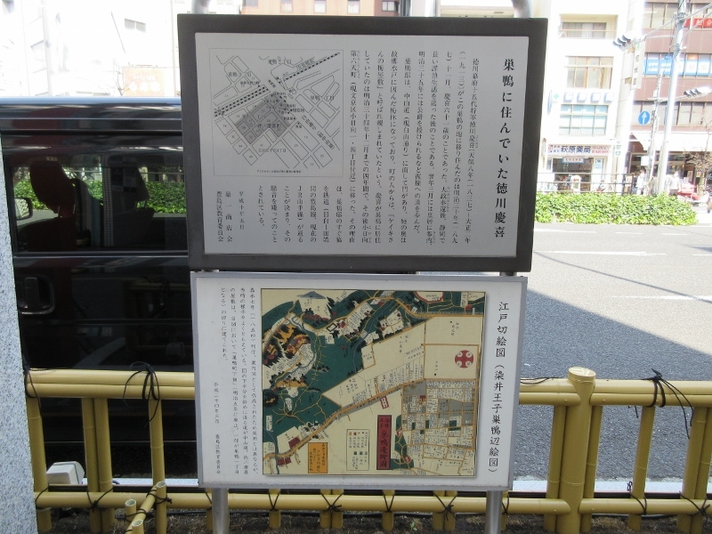 巣鴨駅近くの通りに、標識が残っていました。NHK大河を見ていたので、草剛が演じる演じる徳川慶喜の姿を思い出してしまいました。当時の面影は今の巣鴨駅周辺にはないと思いますが、梅に囲まれて過ごした慶喜を想像しました。
