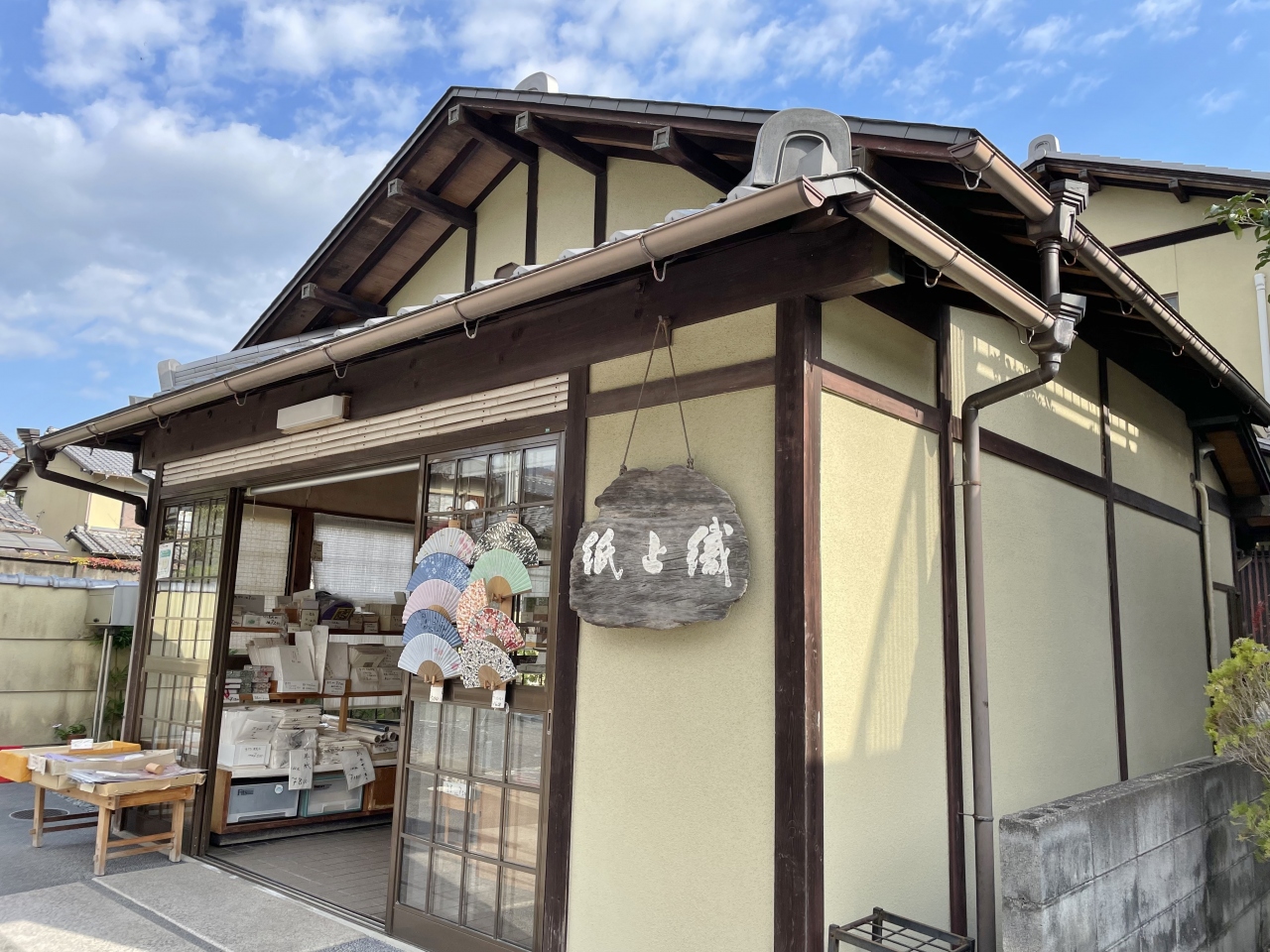 二尊院から化野念仏寺へと続く道の途中にあります。小さなお店ですが店内には和紙製品を中心に扇子や小物ケース、着物の帯など種類豊富に揃っています。工房というだけあって観光客目当てのお土産店とは違い、どれも丁寧に作られています。以前立ち寄った際に扇子と扇子袋を購入しました。生地がしっかりとして今でも重宝しています。