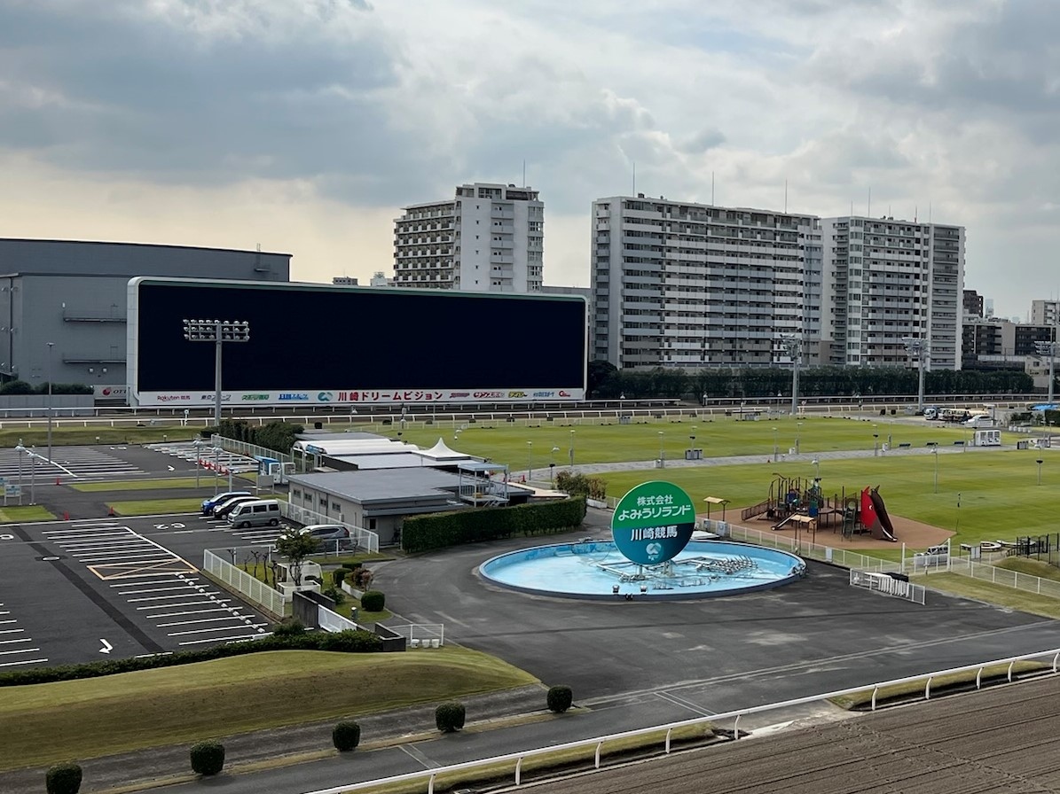 東海道線の川崎駅から歩いて15分のところにある競馬場で、川崎駅からの無料送迎もあります(いまは、コロナの影響で一時休止になっています)。平日は実際にコースを馬が疾走する地方競馬場として、週末は、場外馬券場のWINS川崎として営業しています。川崎競馬場の電光掲示板「川崎ドリームビジョン」は世界最大級で、WINS川崎でも、臨場感のある競馬観戦が楽しめます。