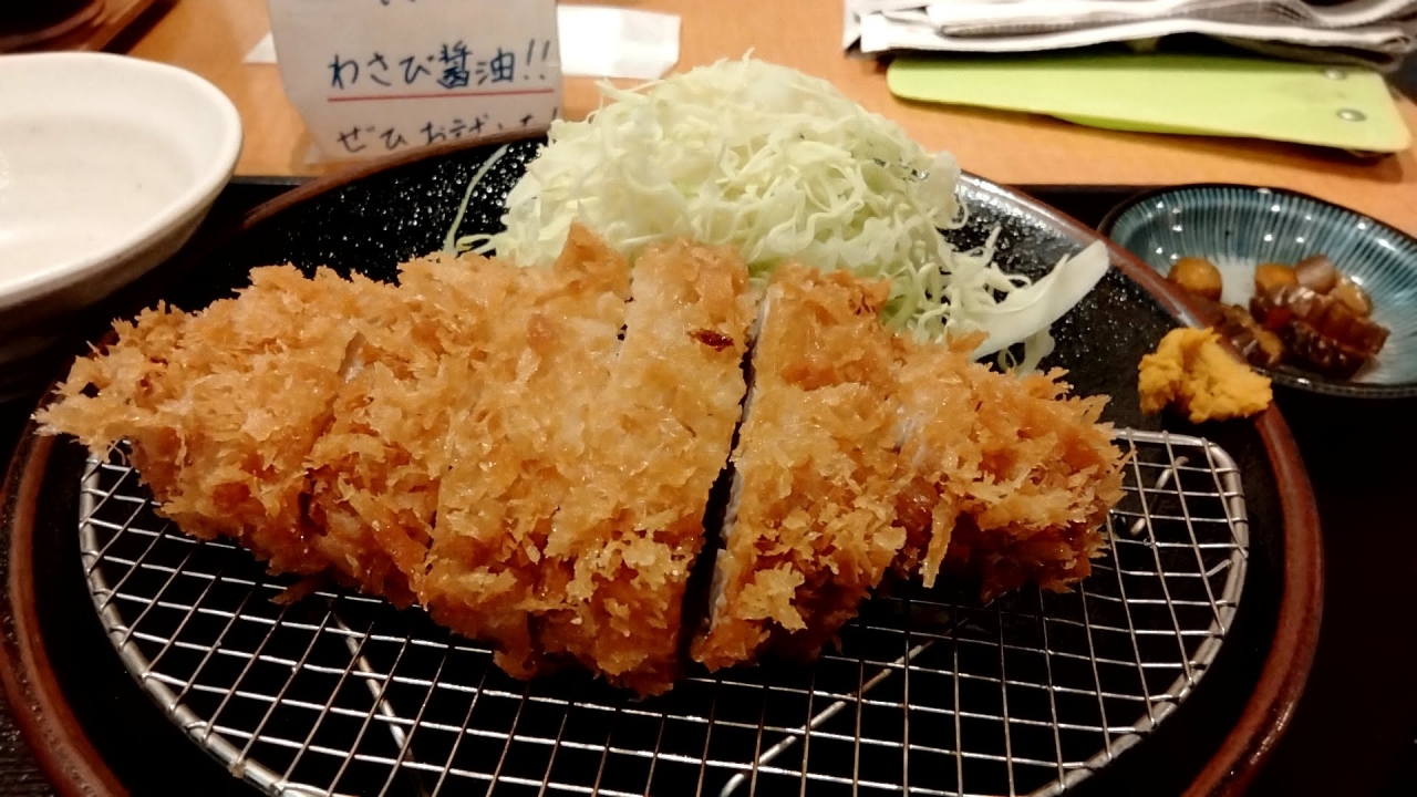 東武ホープセンター内にあるとんかつ屋さん。ロースかつ定食並み130gが1000円で麦飯(+50円)にしていただきました。さくさく厚みもあってコスパ良し。「大吉流わさび醤油ぜひお試しを」とのことで、途中ソースからわさび醤油に変更し胡麻もふって、いろいろな味を堪能できました。