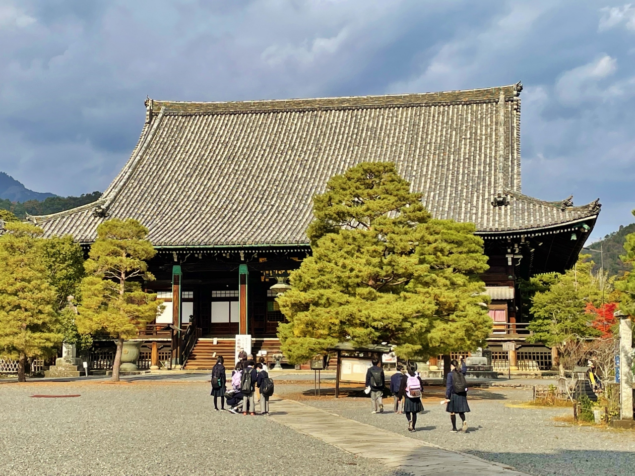 別名「嵯峨釈迦堂」として地元の方に親しまれてる浄土宗知恩院派の寺院です。境内は広く、立派な仁王門をくぐると風格ある大きな本堂の他に、多宝塔や阿弥陀堂などが建っています。本堂内には本尊の釈迦如来立像(国宝)が安置されています。仁王門近くの塀沿いに赤く染まった紅葉がとても綺麗でした。