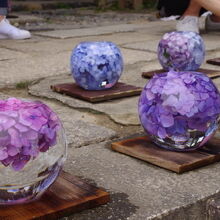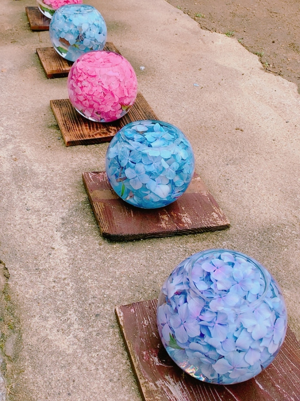 紫陽花のガラスボールがとってもキレイでSNS映えするお寺でした!