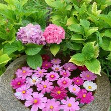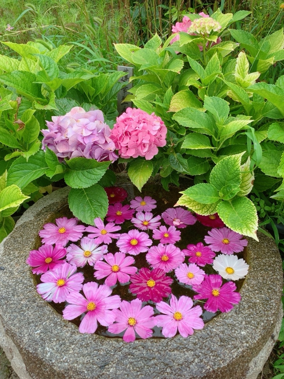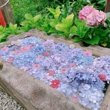 境内はそこまで広いわけでは無いのですが、階段ごとに紫陽花のガラスボールが飾られていて、パステルカラーがとってもキレイでした。 この時期に咲く、珍しいコスモスも所々に咲いてて、花手水にコスモスと紫陽花が一緒に飾られているのもとってもキレイでした。 SNSで話題になっていたので、かなり混み合っていましたが、キレイな写真を撮れてよかったです。
