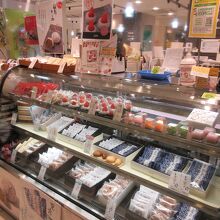 JR赤羽駅構内にあるエキュート赤羽にあります。バレンタインデー間近の休日午前に駅を降り、スイーツを探しに寄りました。和菓子専門店で、日持ちするどら焼きやまんじゅうや最中などがあります。和菓子の他店同様、いちご大福がありました。ふっくらしたかわいらしいいちご大福です。隣に上生菓子が並んでいて華やかなショーケースでした。チョコどらがあるのも特徴です。