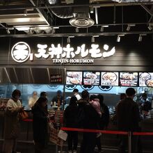 セブンパーク天美の3階のフードコートにあるホルモン焼きのお店。福岡で創業した人気店のFC店のようで、関西にはヨドバシ梅田やホワイティ梅田、神戸umeieモザイクにもありますが、こちらはフードコートのお店(Webサイトによると初のフードコート店らしい)。このため、目の前の鉄板で焼くカウンター席ではないので、出来上がると、鉄板の上で器を温めて提供。