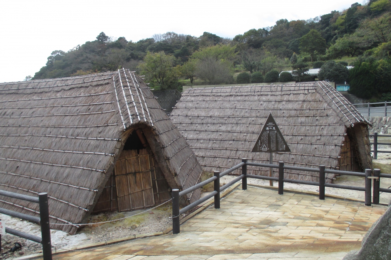 明礬温泉を廻っていると、三角形の湯の花小屋をいくつも目にしました。全部で20~30棟くらいはあるのでしょうか。小屋の中の仕組み、そして、このわら葺きのこの形は伝統的なものだそうですが、最初に湯の花小屋を作った人はいろいろな経験則から創作したのでしょうね。2006年(平成18年)に、国の重要無形民俗文化財に指定され、2012年(平成24年)には、国の重要文化的景観に指定されているそうです。