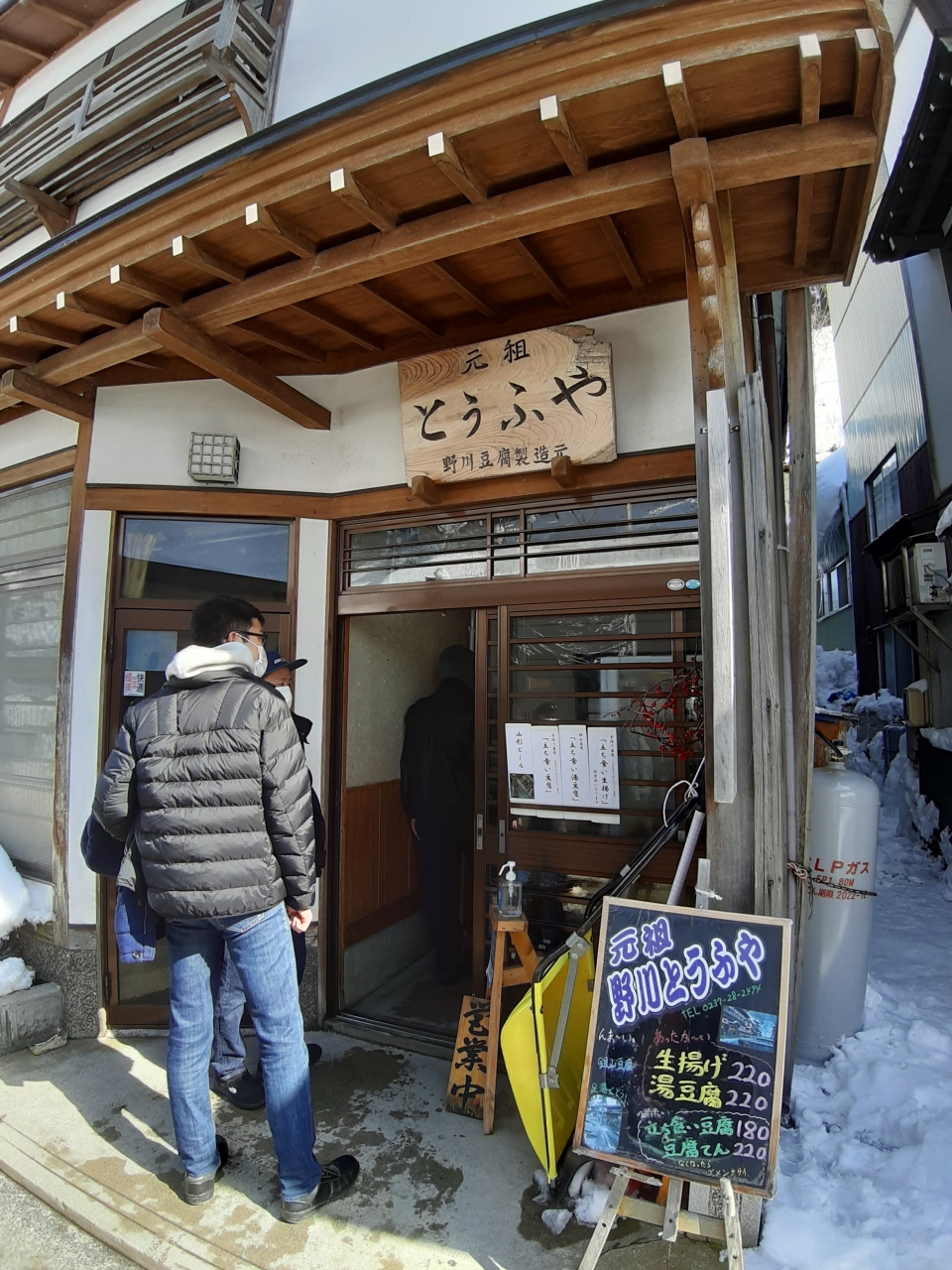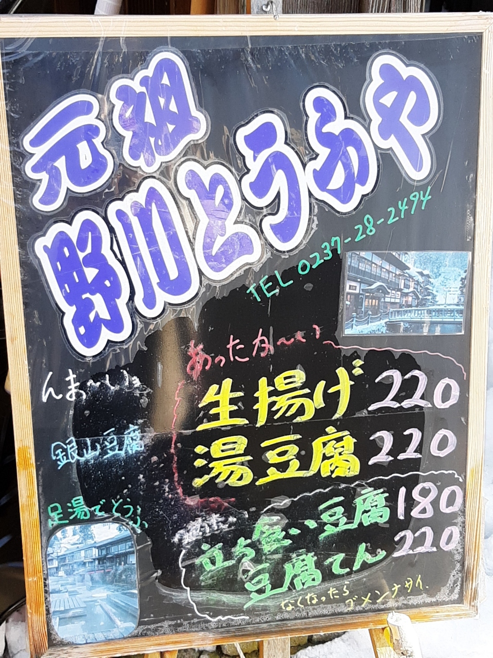 銀山温泉の街並みに入ってすぐ左手、足湯の手前にお店があります。