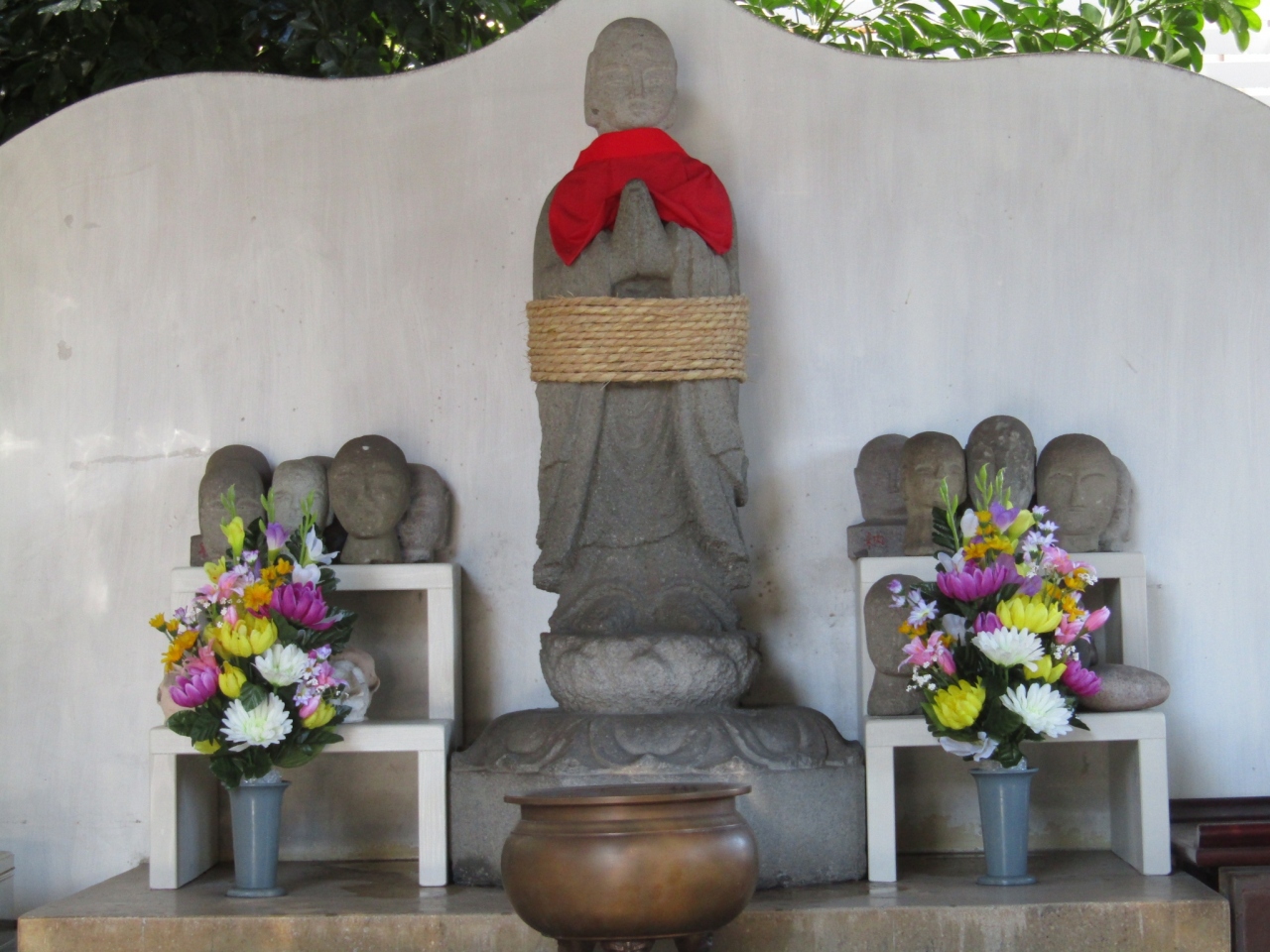 願行寺は「しばり地蔵」があることで有名ですが、ここではお地蔵様の首を持帰って病気平癒や除災などをお願いし、心願成就の際には首を2つお返しするそうで、背後には奉納された首が並んでいました。