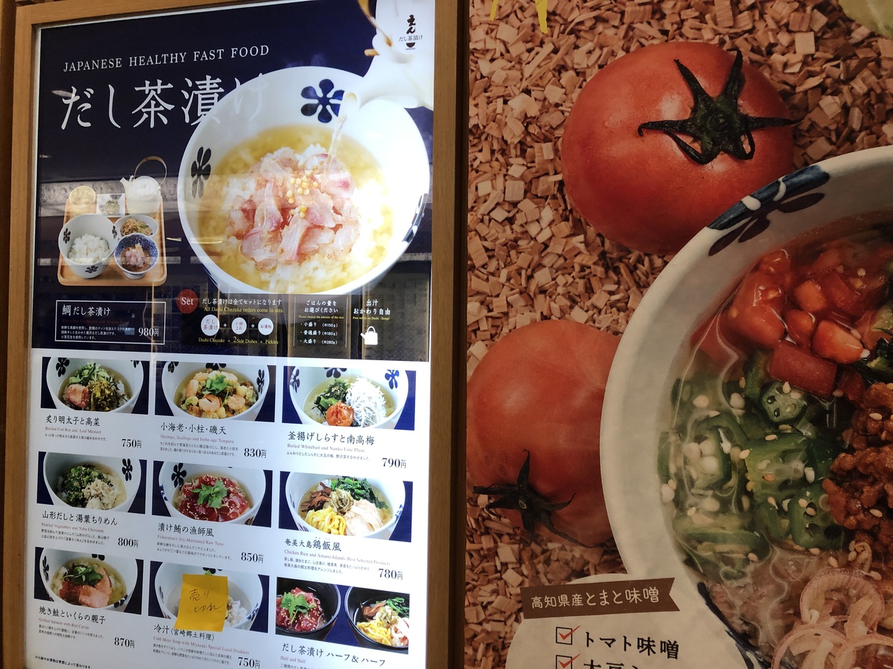 土曜16時ごろ…中途半端な時間帯で店内客はおらずゆっくり食事できました。丸ビルの地下街はお店いろいろありますがあっさりしたものが食べたくてこちらへ。定番の鯛だし茶漬けにしました。出汁がよく効いて優しい味わいでした。ご飯の量を選べます。