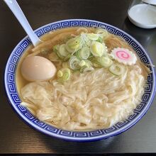 現れたラーメンは縮れた太麺がいかにも美味しそう。スープもあっさりながら、深いコクがあります。味玉も味が沁みていて、これは美味しい! ひとつだけ残念だったのは、ワンタンメンはチャーシューが入ってないのですね。普通のラーメンにすれば良かった? ラーメンは大盛も料金同じです。